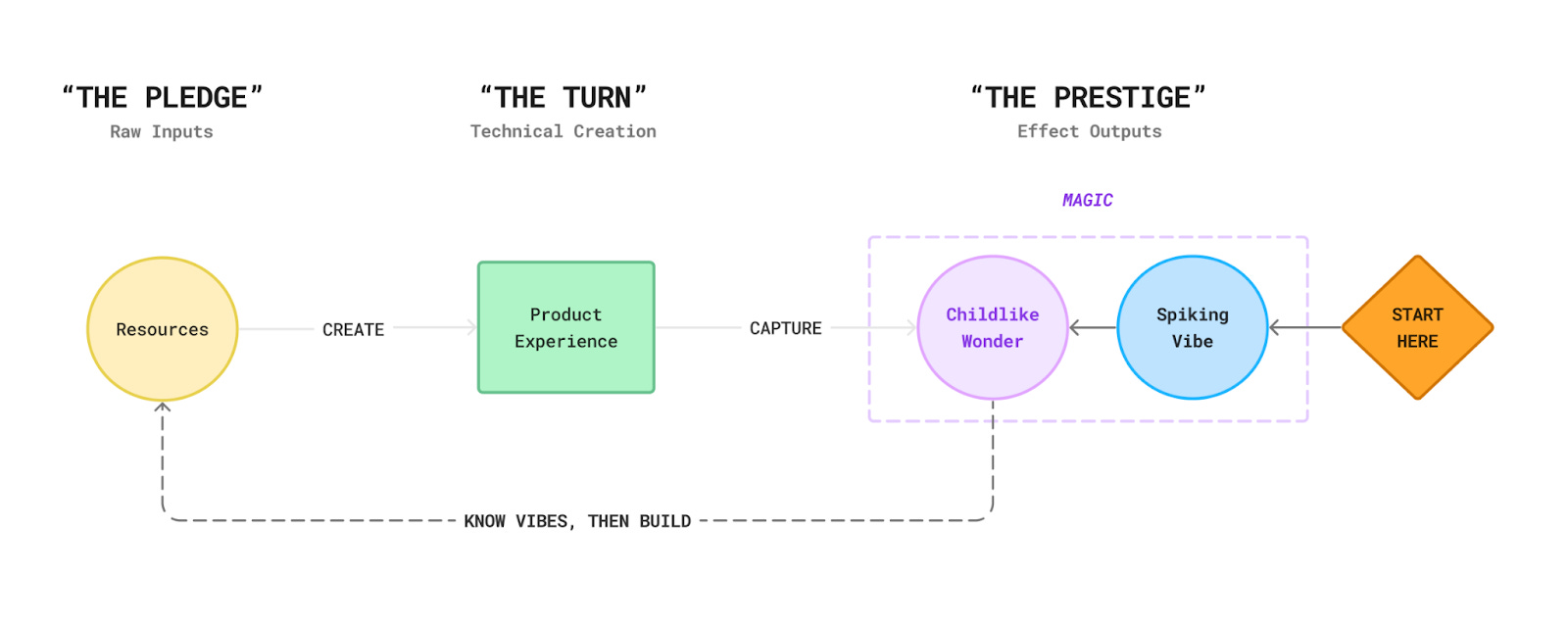 The secret, the product, the experience — the creation, impresses no one. Magical product experiences are captured through emotion. You might call this emotional climate a vibe, aura, or spirit. Reverse-engineering magic starts by working backwards from a single spiking vibe, to co-create with your audience, that leads to childlike wonder.